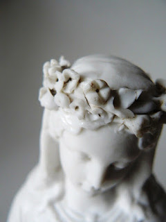 una statuina della Vergine, realizzata in milk glass nella seconda metà dell'800